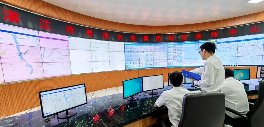 ▲湛江粤海水务调度指挥中心运行人员做好科学供水调度